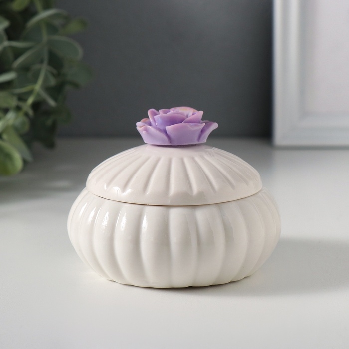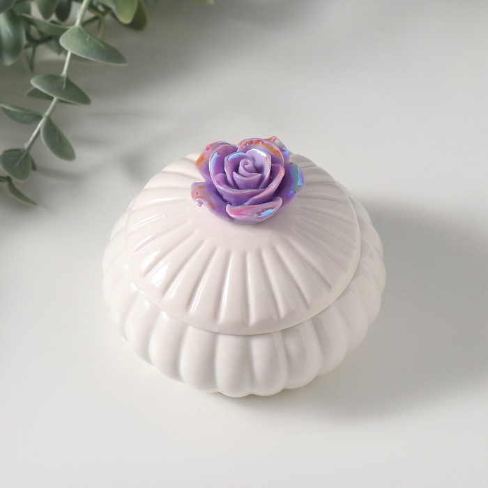 Шкатулка керамика "Цветок розы" сирень перламутр 7,5х7,5х6,5 см