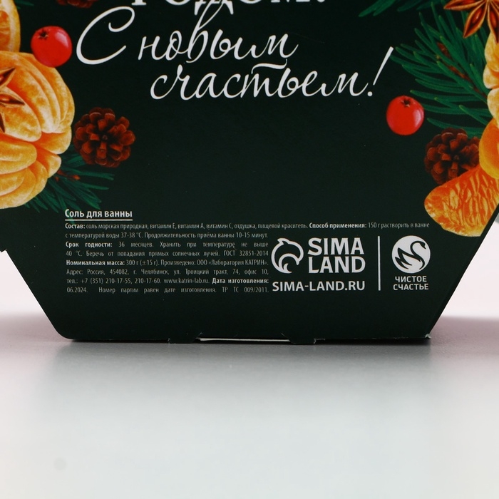 Соль для ванны ЧИСТОЕ СЧАСТЬЕ «Праздничного настроения», 300 г, аромат пряного цитруса, Новый Год