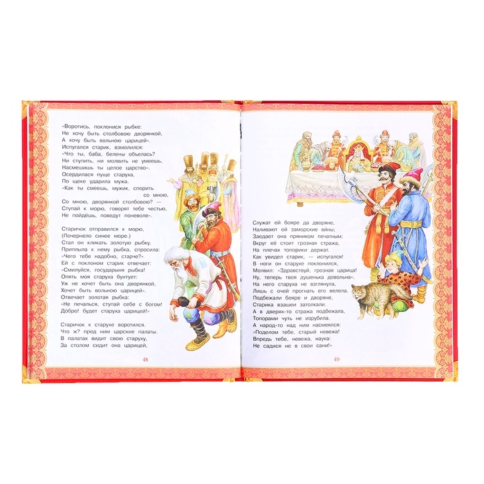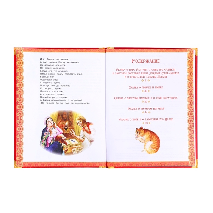 - Содержит самые известные сказки Пушкина, такие как «Сказка о рыбаке и рыбке», «Сказка о царе Салтане» и другие.