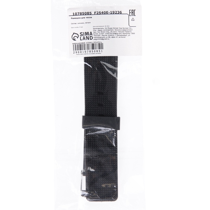 Ремешок для часов 20 мм, силикон, l-22 см, черный