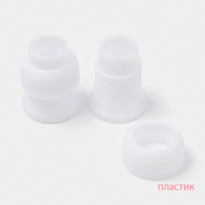 - Два адаптера из пластика: для удобного и быстрого соединения насадок с кондитерскими мешками.