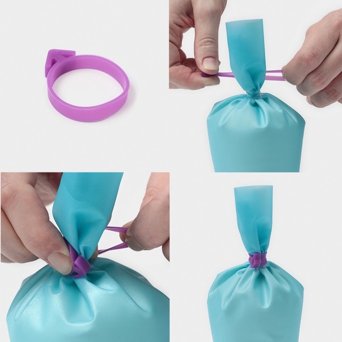 - Три зажима из силикона: надежно зафиксируют кондитерский мешок, предотвращая вытекание крема и обеспечивая комфортную работу.
