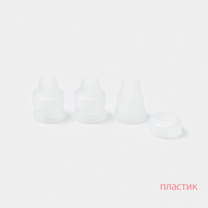 - Три адаптера из пластика: для быстрого и удобного соединения насадок с кондитерскими мешками.