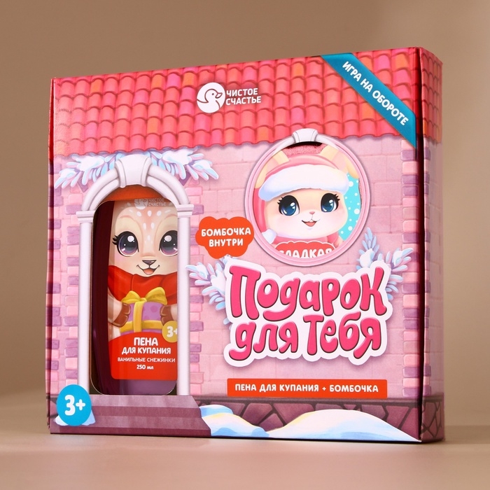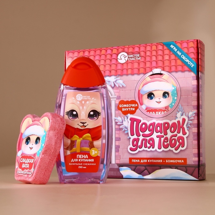 Подарочный набор детский ЧИСТОЕ СЧАСТЬЕ «Для тебя»: пена для купания 250 мл и бомбочка для ванны 110 г, Новый Год