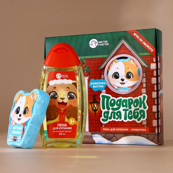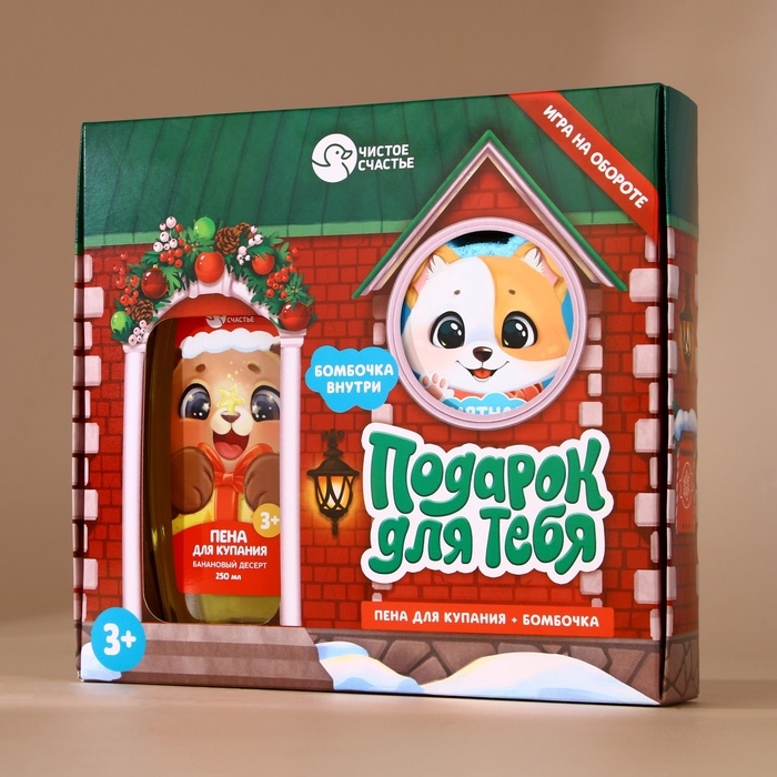 Подарочный набор детский ЧИСТОЕ СЧАСТЬЕ «Подарок для тебя»: пена для купания 250 мл и бомбочка для ванны 110 г, Новый Год