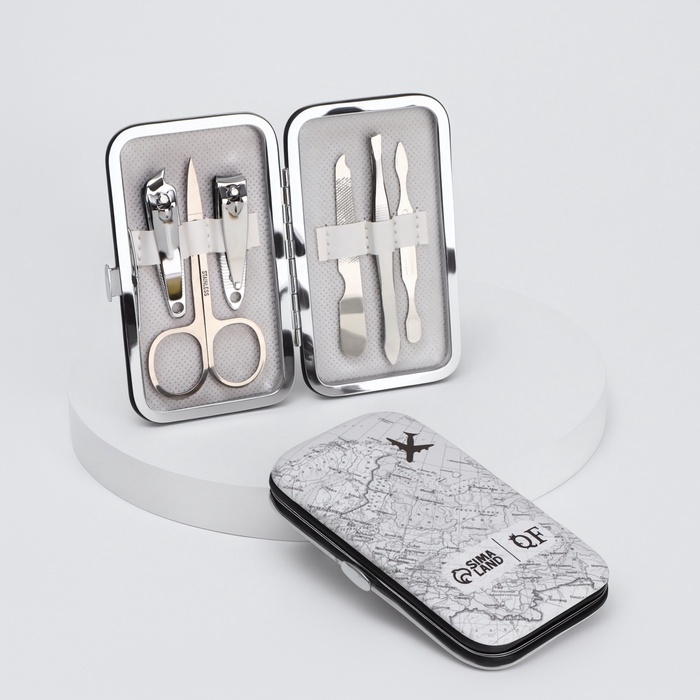 Набор маникюрный «Карта», 6 предметов, в футляре, чёрный, белый