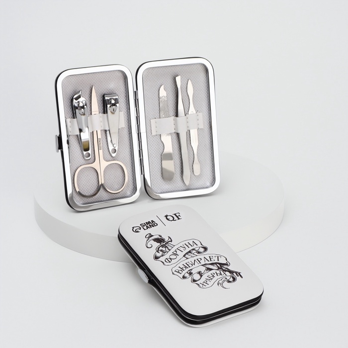 Набор маникюрный «Фортуна», 6 предметов, в футляре, чёрный, белый