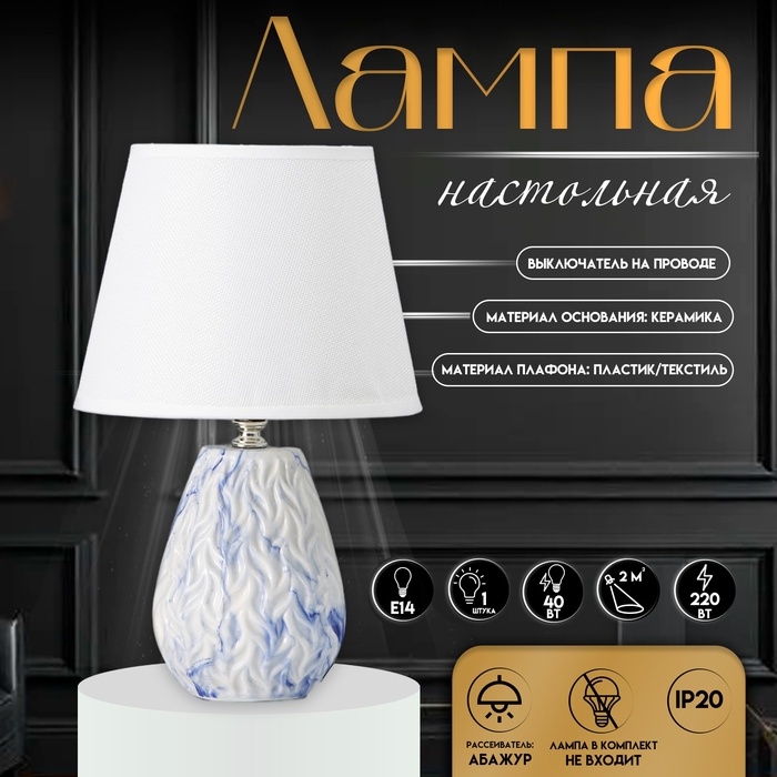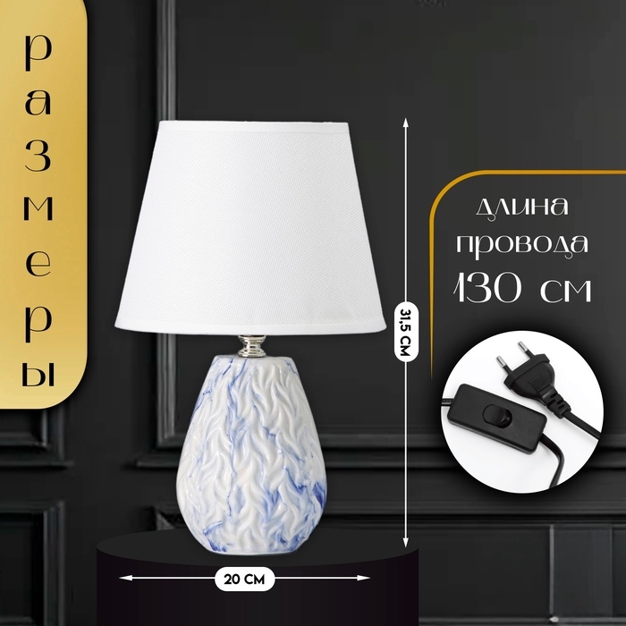 Настольная лампа с абажуром RISALUX «Андрес», Е14, 40 Вт, бело-синий, 20×20×31.5 см