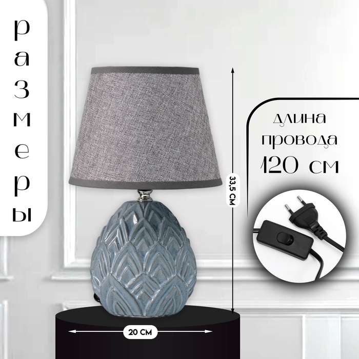 Настольная лампа с абажуром RISALUX «Аурелия», Е14, 40 Вт, серый, 20×20×33.5 см