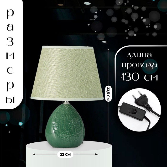 Настольная лампа с абажуром RISALUX «Инесса», Е14, 40 Вт, зелёный, 22.5×22.5×33.5 см