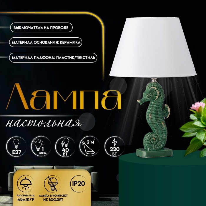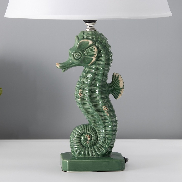 Настольная лампа с абажуром RISALUX «Морской конек», Е27, 40 Вт, зелёный, фигурное основание, 30×30×43.5 см