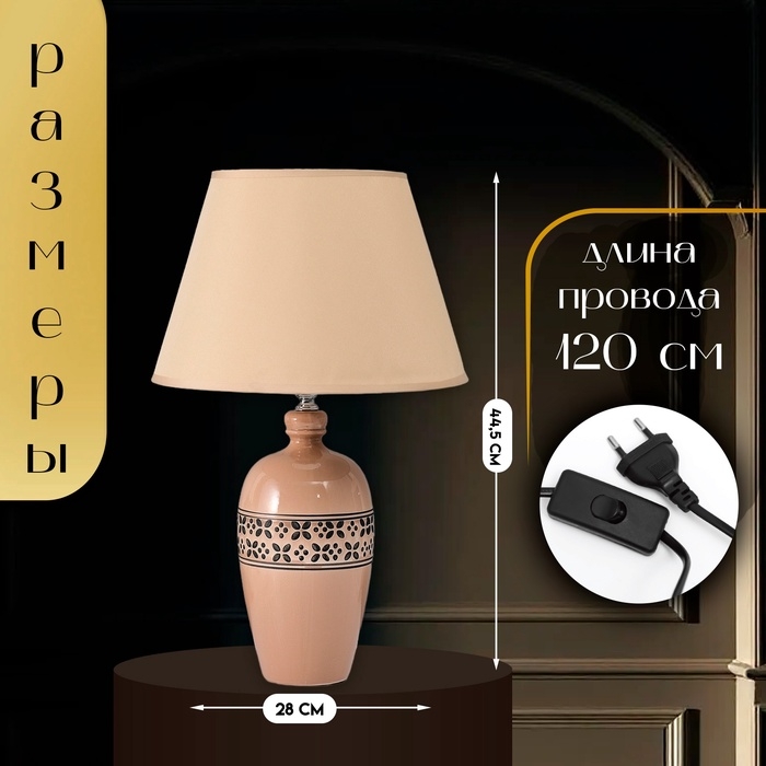 Настольная лампа с абажуром RISALUX «Эпика», Е27, 40 Вт, 28×28×44.5 см