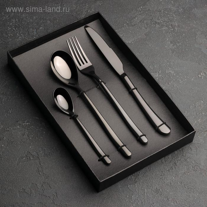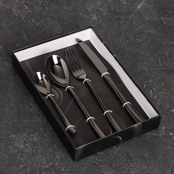 Столовые приборы из нержавеющей стали Magistro «Джентри», 4 предмета, цвет чёрный