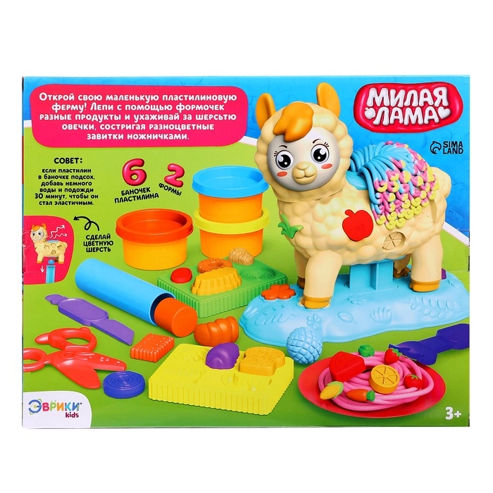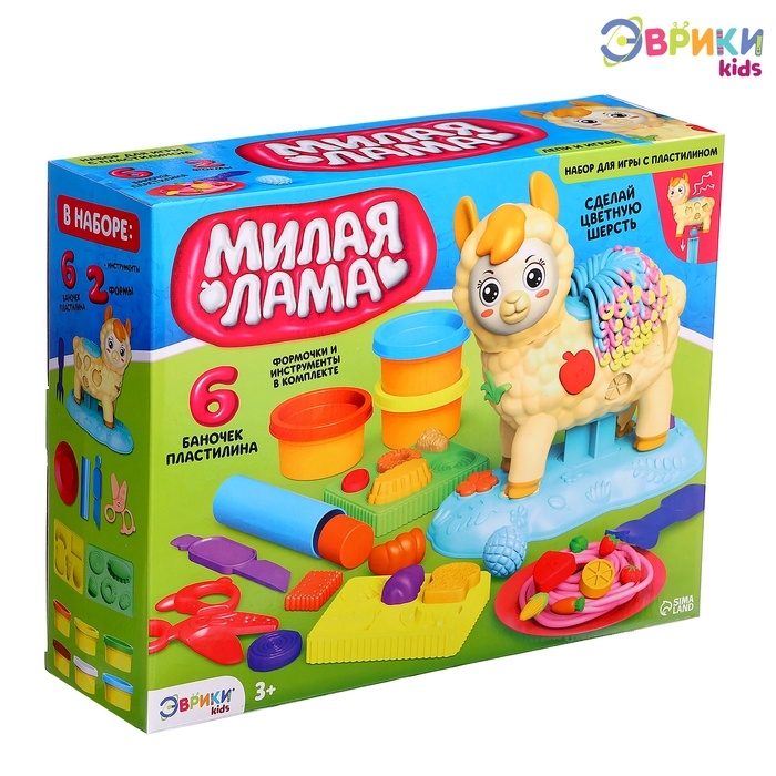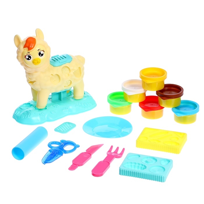 Набор для игры с мягким пластилином «Милая Лама», 6 баночек с массой для лепки, 2 формы