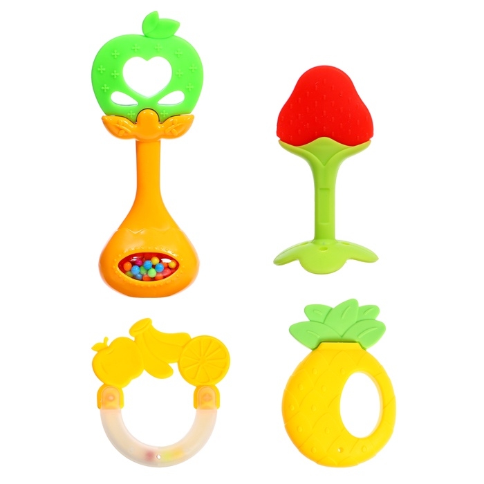 Набор погремушек с прорезывателем для зубов «Фруктики. Яблоко», 4 шт