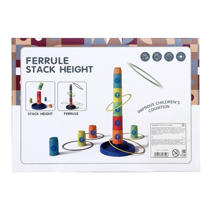 - Два варианта игры — традиционный кольцеброс и пирамидка для сборки.