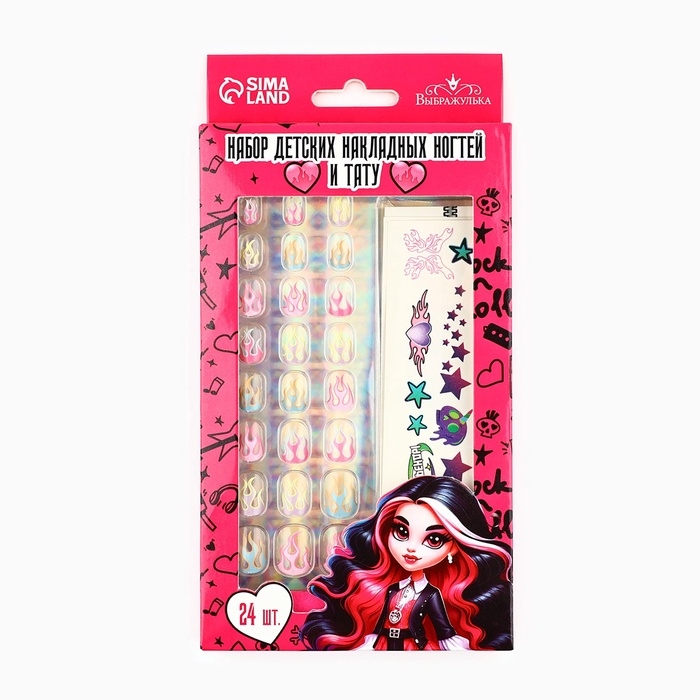 Детские накладные ногти "Рок-н-ролл", 12 шт