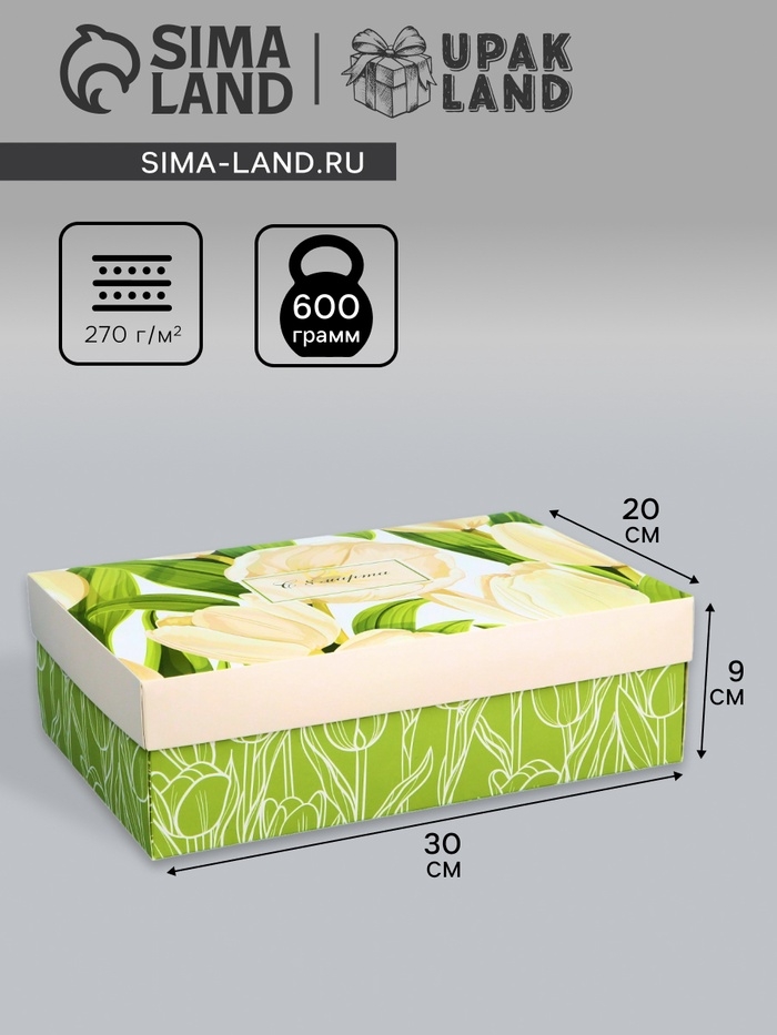 Коробка складная, крышка-дно, "С 8 марта", 30 х 20 х 9 см без окна