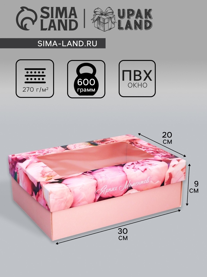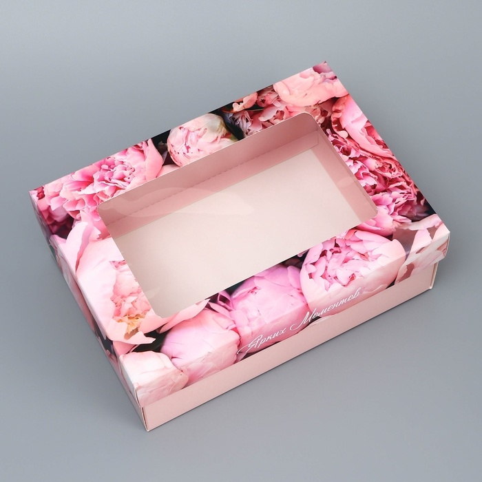 Коробка складная, крышка-дно, "Ярких моментов", 21 х 15 х 7 см с окном