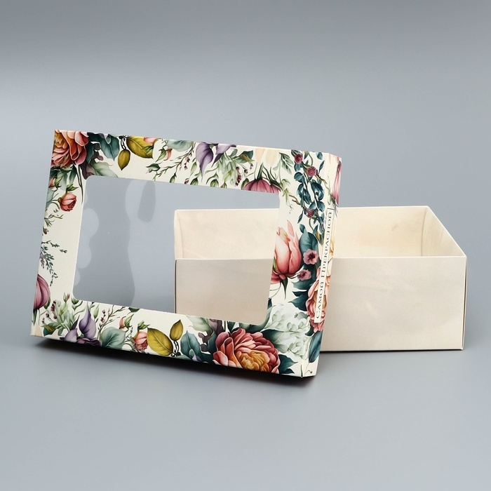 Коробка складная, крышка-дно, "Цветочки", 24 х 17 х 8 см с окном