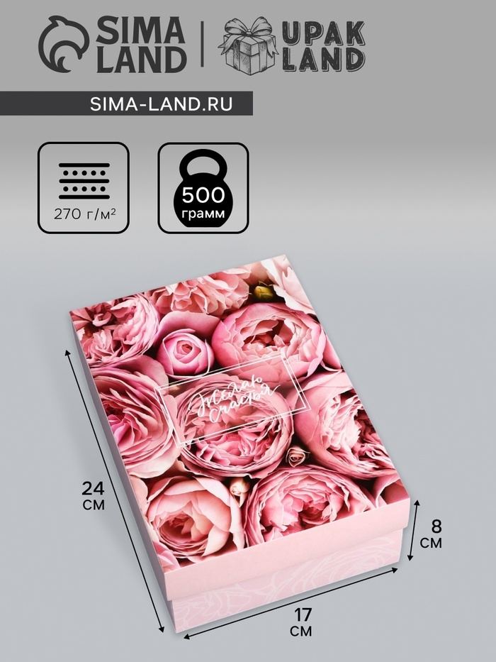 Коробка складная, крышка-дно, "Желая счастья", 24 х 17 х 8 см без окна