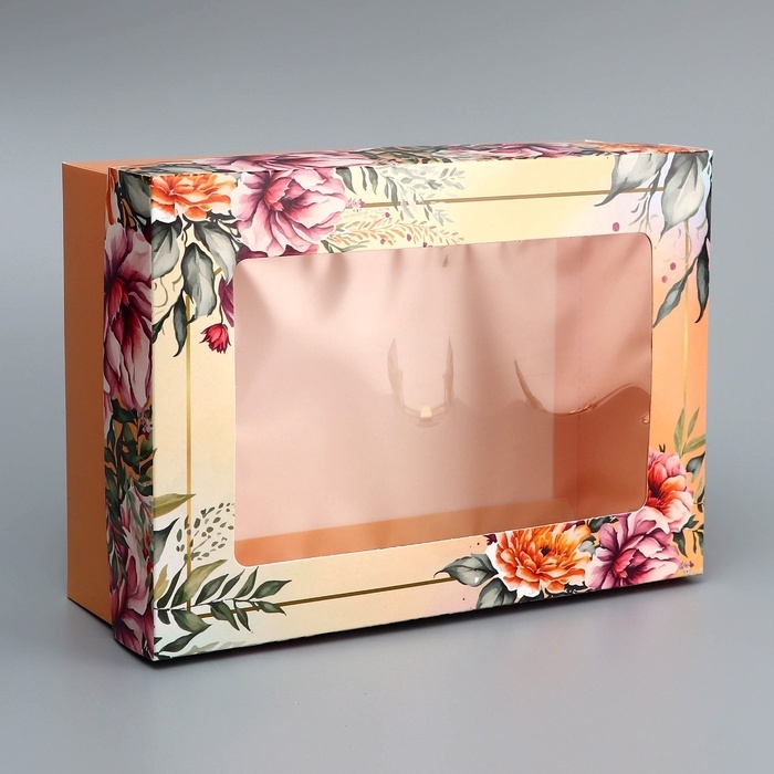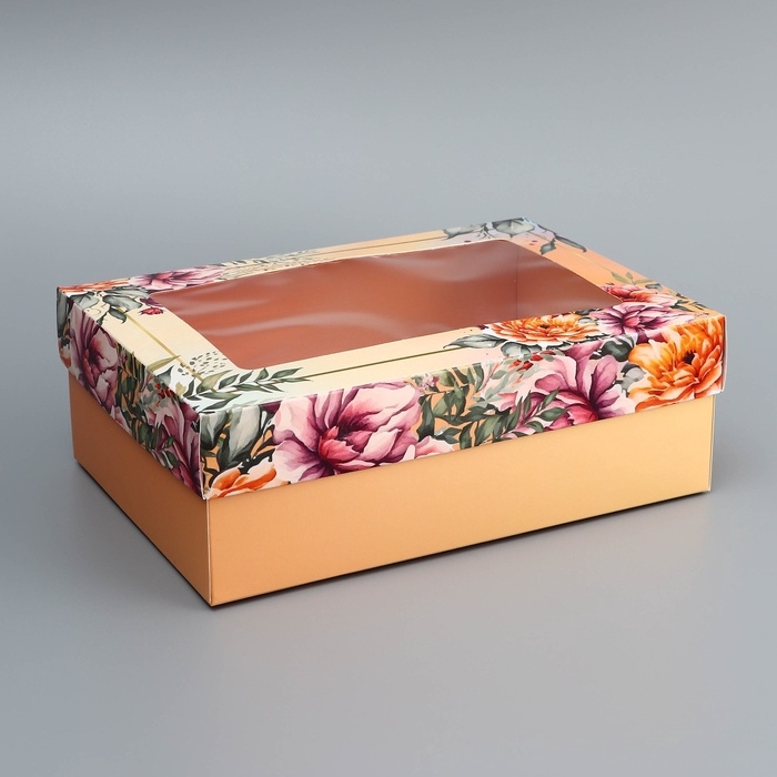 Коробка складная, крышка-дно, "Цветочки", 24 х 17 х 8 см с окном