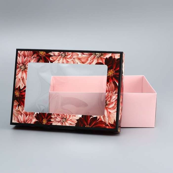 Коробка подарочная складная, упаковка, «Чёрная», с окном 21 х 15 х 7 см