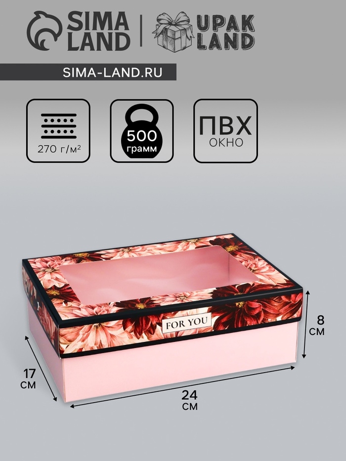 Коробка складная, крышка-дно, For You", 24 х 17 х 8 см с окном
