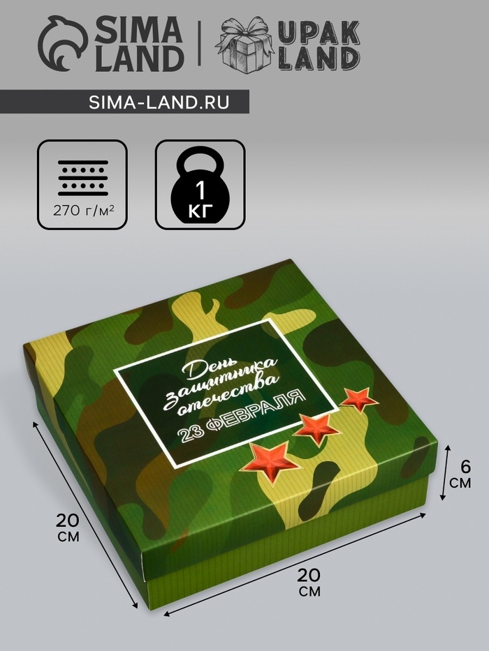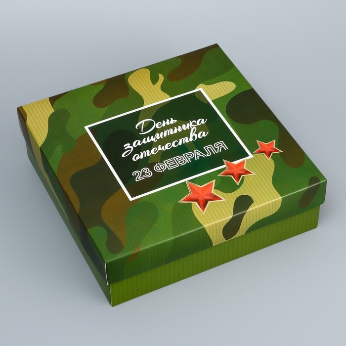 Коробка складная, крышка-дно, "День защитника Отечества", 20 х 20 х 6 см без окна
