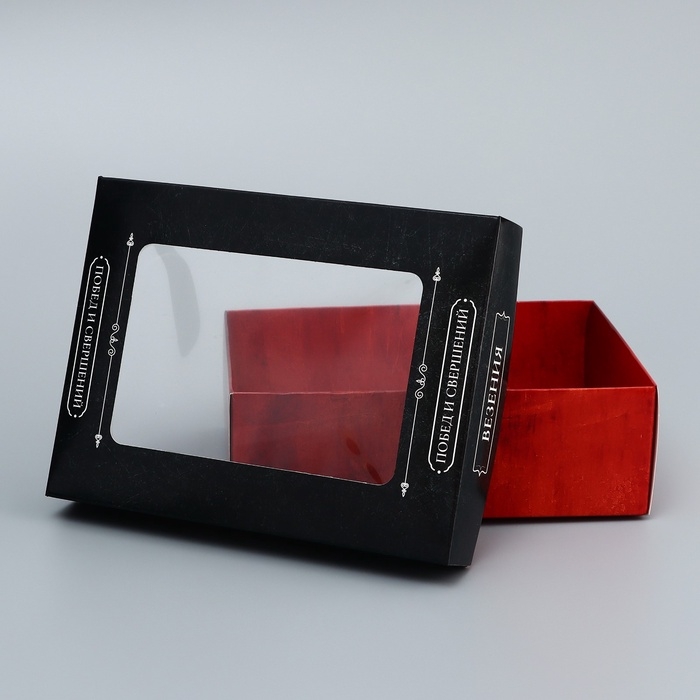 Коробка подарочная складная, упаковка, «Чёрная», с окном 21 х 15 х 7 см