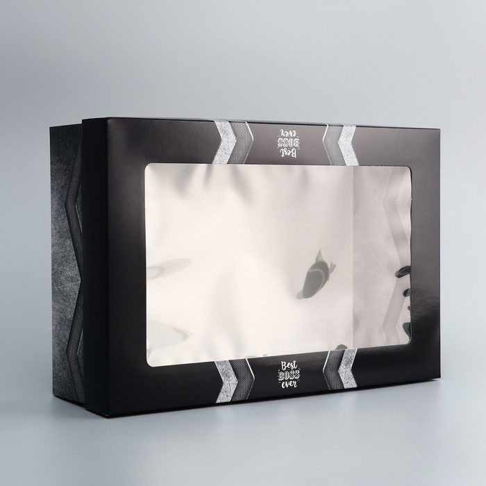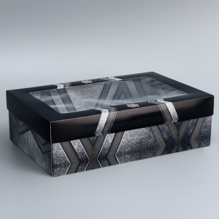 Коробка складная, крышка-дно, "Настоящему мужчине", 30 х 20 х 9 см с окном