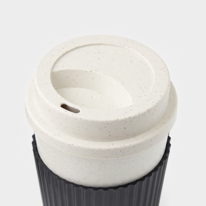 Стакан для кофе с крышкой WeatFiber, 350 мл, 8,8×14 см, пластик, многоразовый, белый/черный