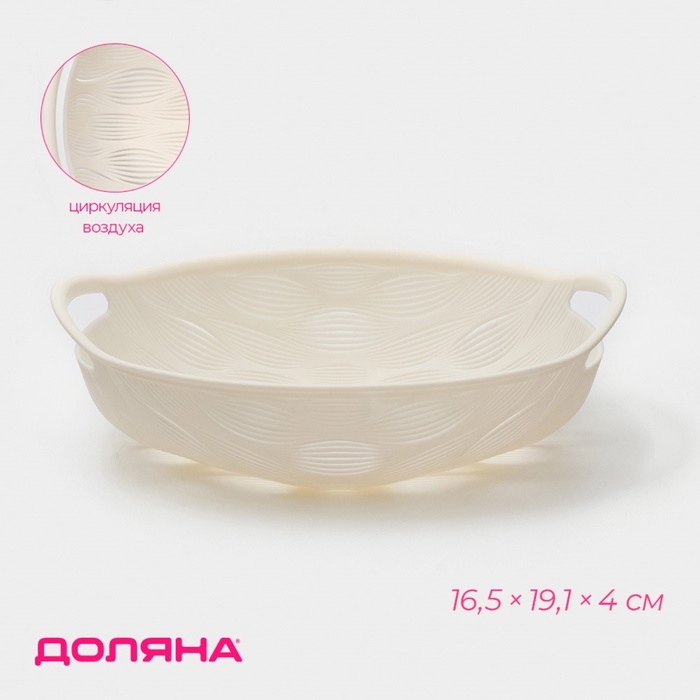 Эта небольшая, но стильная ваза (16,5×19,1×4 см) из белого пластика станет прекрасным украшением вашей кухни. Её аккуратный размер идеально подойдет для небольших композиций из фруктов и ягод, а прорези для циркуляции воздуха помогут сохранить их свежесть надолго.