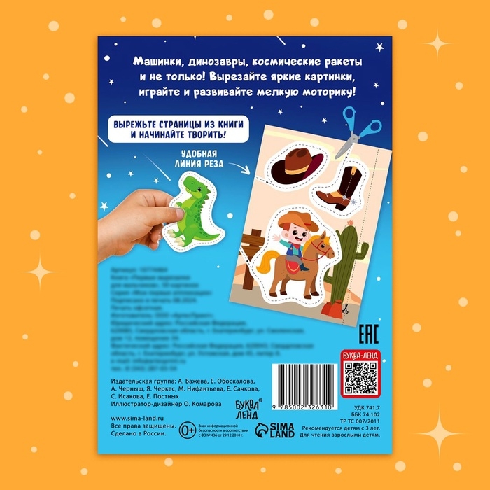 - Книга станет хорошей основой для совместного времяпрепровождения с ребёнком. Вы можете вырезать картинки вместе, обсуждать детали и цвета, а затем создать из них целую коллекцию оригинальных аппликаций. Это не только полезно, но и весело!
