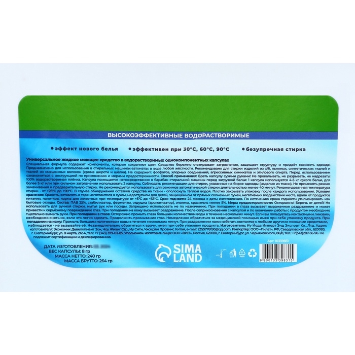 Ощутите магию весеннего цветения с капсулами для стирки "Весенние цветы". В каждой капсуле заключено настоящее чудо – мощный концентрат, который эффективно устраняет загрязнения, сохраняя яркость и свежесть вашей одежды. Но самое главное – это уникальный аромат, напоминающий о первом теплом ветре и распускающихся бутонах.