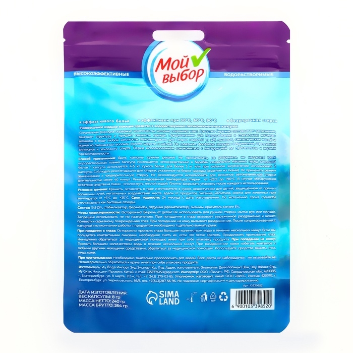 Капсулы для стирки Мой Выбор "Свежесть океана" 10 шт. по 8 гр дойпак