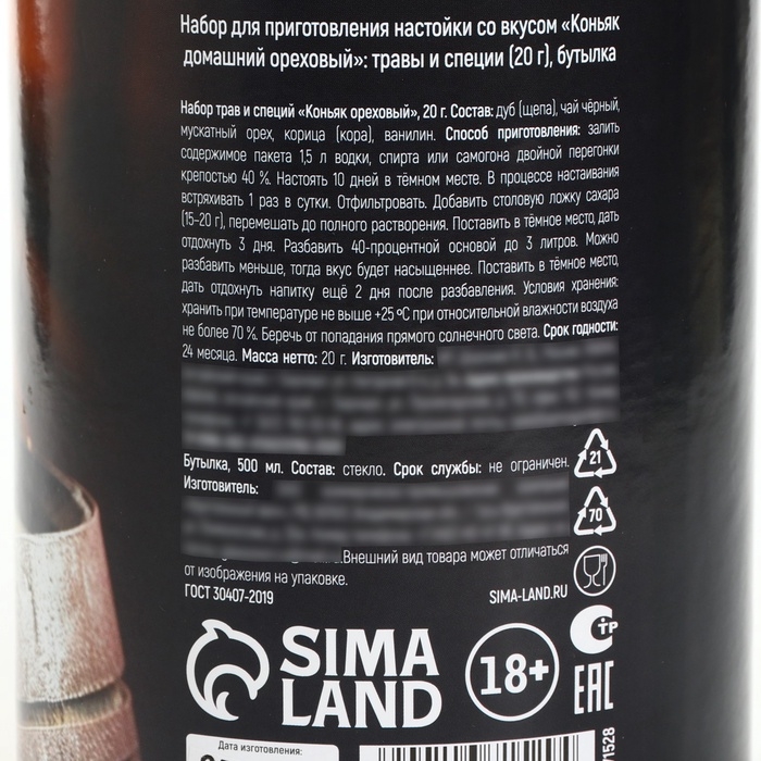 Подарочный набор для приготовления настойки «Коньяк орехи», набор трав и специй, бутылка