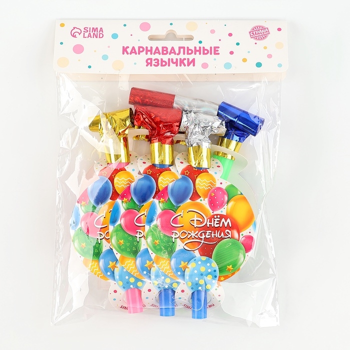 Карнавальный язычок «С Днём Рождения», на подложке, набор 6 шт