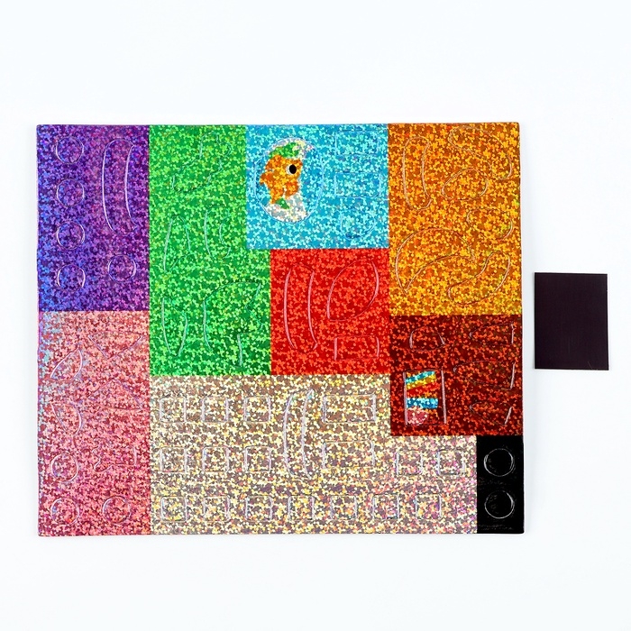 Помогите малышу собрать яркую мозаику: присоединяйте переливающиеся объёмные элементы к картинке-основе в нужном порядке. Самоклеящиеся стикеры выполнены из мягкого блестящего материала, который и создаёт неповторимый эффект.