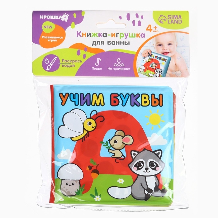 Книжка - раскраска для ванны Крошка Я «Учим буквы», от 4 мес.