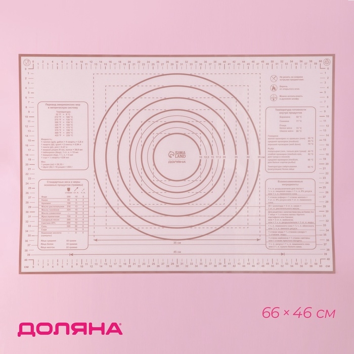 - Большой размер: 66x46 см – достаточно места для раскатки даже самого большого пласта теста и выпекания больших форм.