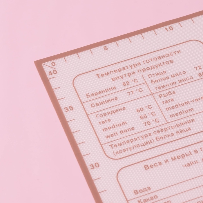 - Полезная информация: на коврике указаны стандартные веса и меры основных продуктов, а также температура готовности для достижения идеального результата.