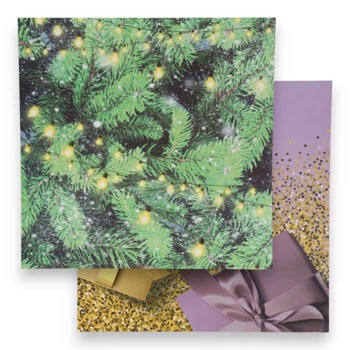 Фотофон двусторонний картон плотность 350 гр "Ёлочные ветки и подарки" 50х50 см