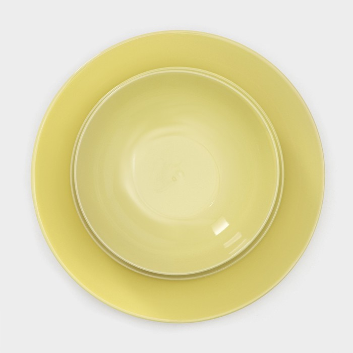 Набор тарелок керамических Доляна «Пастель»,18 предметов: 6 тарелок d=19 см, 6 тарелок d=27 см, 6 мисок d=19 см, цвет жёлтый