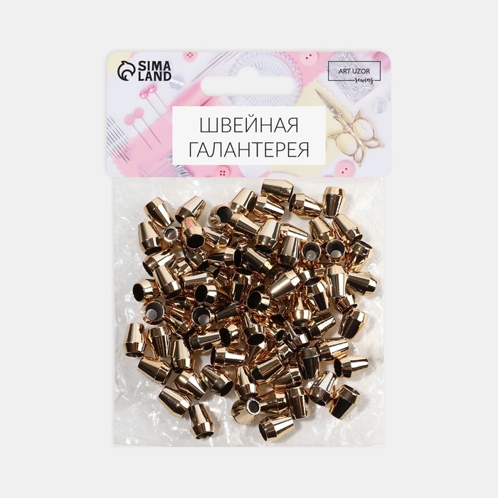 Наконечник для шнура, d = 4 мм, 13 × 10 мм, 100 шт, цвет золотой