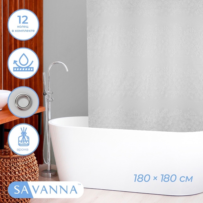 Штора для ванной Доляна «Ажур», 180×180 см, PEVA, белая