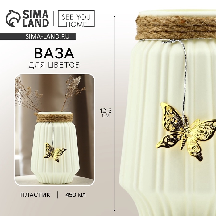 Ваза для цветов «Бабочка» пластиковая, 12,3 х 6 см