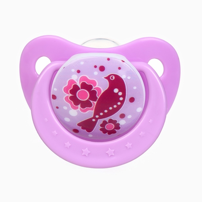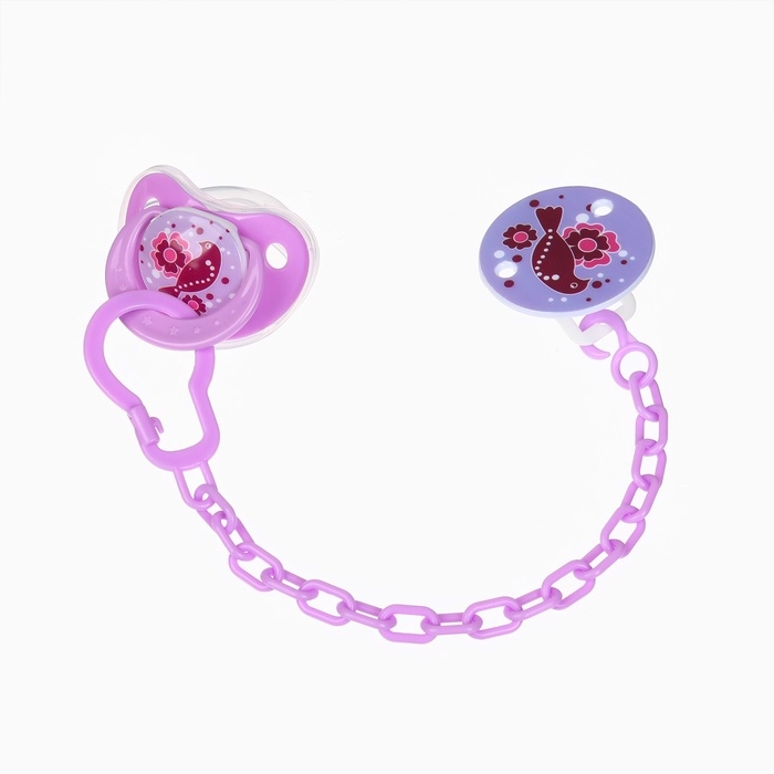 Пустышка ортодонт., с колпачком и держателем, от 0 мес., цвет Фиолет / Роз