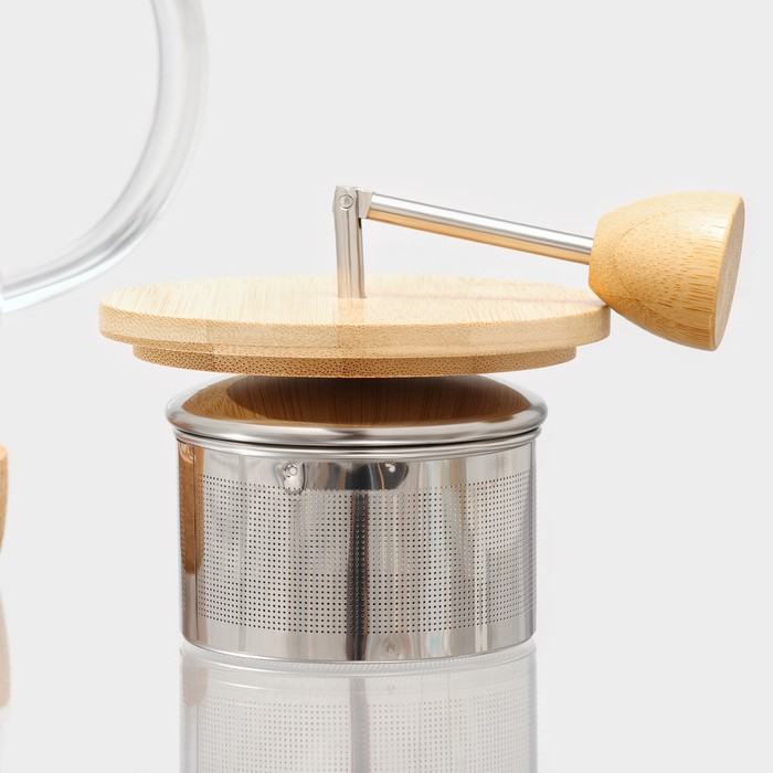 Удобная подставка из натурального бамбука не только обеспечивает устойчивость чайника, но и придаёт ему особую теплоту и экологичность. Бамбуковая крышка с плотной посадкой помогает сохранять аромат и температуру напитка, а встроенный металлический фильтр гарантирует, что в вашу чашку попадет только чистый и насыщенный чай.