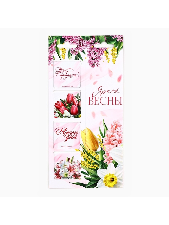 Магнитные закладки 4 шт в открытке "С 8 марта"